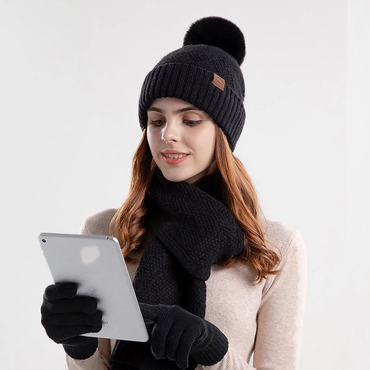 Hot Sale!Hat Scarf and Gloves Set for Women,Winter Warm Scarfs,Gloves,Hat Combo for Women,Knitting Beanie Hat,Infinity Scarf,Touch Screen Lined Matching Gloves Set for Women